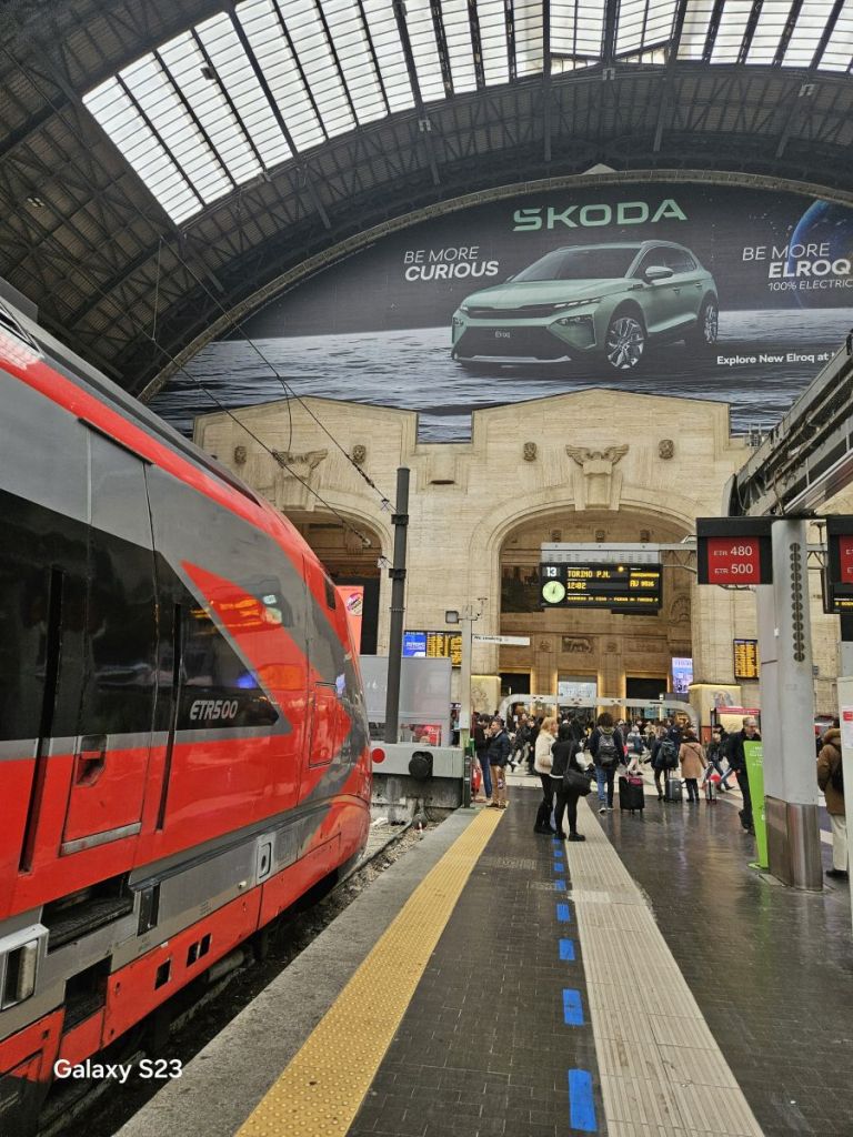 Sieť rýchlovlakov v Taliansku patrí medzi najrozvinutejšie v Európe. Je moderná, rýchla a spája hlavné mestá a regióny. Úsek, ktorý sme takto podnikli, Rím – Miláno je jeden z najvyťaženejších železničných úsekov v Európe. Lístok na túto trasu bol pomerne drahý. Za dva lístky sme zaplatili 99 eur. Kto chce však zážitok, musí peniažky obetovať. Zasa nechodíme túto trasu každý deň. Najrýchlejší spoj je modernejšia Frecciarossa 1000, idúca 300-360 km/h. My sme sa vtedy akurát s Jankou škriepili a ona sa pri objednávaní lístkov uklikla. A tak sme šli troška pomalšou mašinkou Frecciarossa. Dosahuje maximálnu rýchlosť iba 300 km/h. Keďže cena lístka bola rovnaká, bol som troška napajedený. Tak nabudúce..