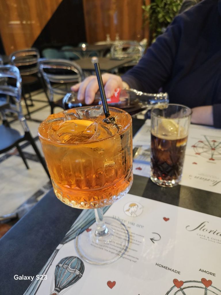 Čo je ešte typické (samozrejme okrem talianskej kávičky, ktorú som ja, ale nemal – iba raz, takú hotelovú, na raňajkách) je Apperol Spritz. Najprv ľad, potom prosecco, trocha Aperolu, jemne doliať sódou a samozrejme, ozdobiť pomarančom. A je to. Inak v dobe písania tohto cestopisu (mimochodom v kúpeľoch, tu je vždy na to najviac času) čítam znova článok, že talianska kuchyňa je opäť označená za najlepšiu na svete. A je mňam.