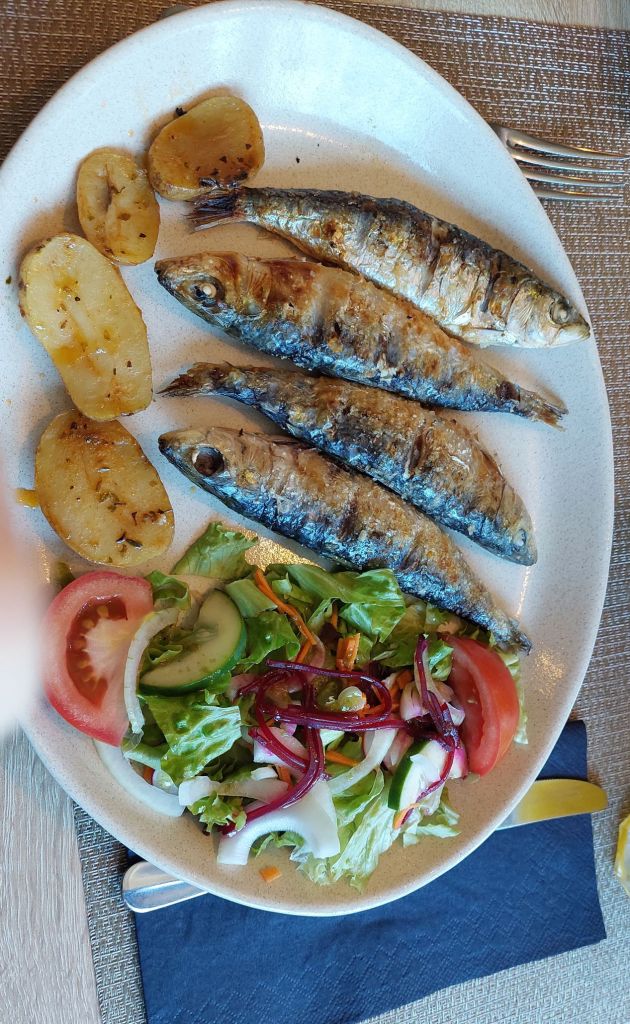 Potom sme sa šli dobre napapať. Ja som mal znova makrelky, a musím povedať, že to bola dobrá voľba. Boli totiž lepšie, ako tie na začiatku pobytu. Mňam. Portugalsko je skrátka „morská krajina“.