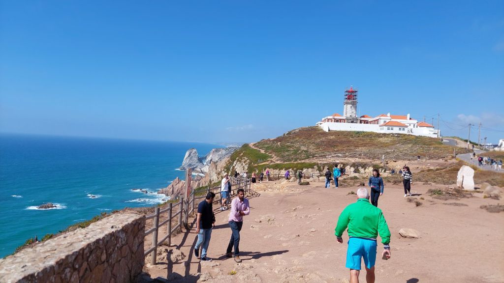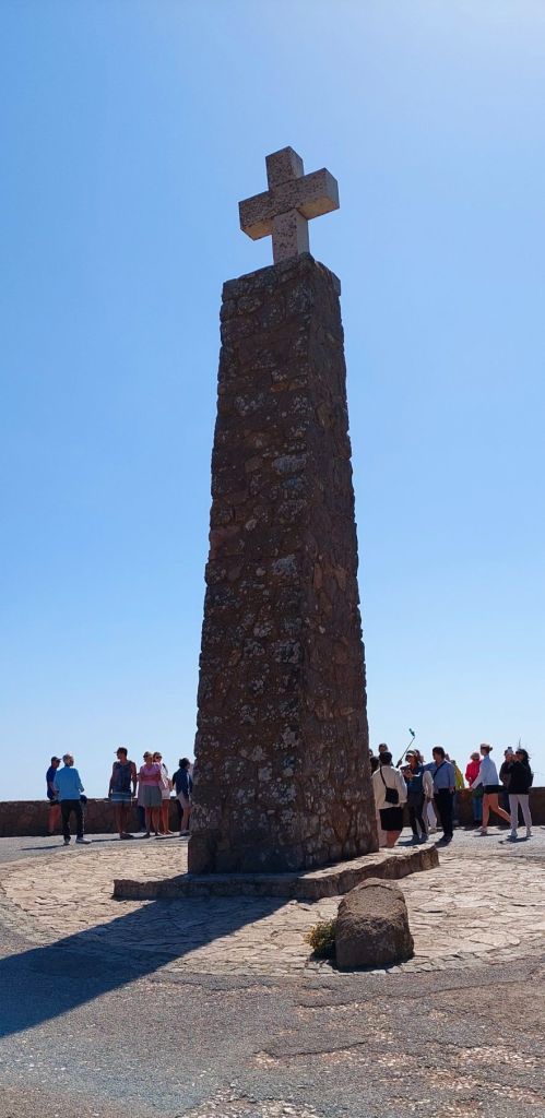 A keď už sme pri tom mori, kúsok od Sintry a teda aj Lisabonu a nachádza miesto, pomenované Cabo da Roca. Je to najzápadnejší bod nielen pevninského Portugalska, ale samozrejme celej kontinentálnej Európy. Toto miesto obmýva atlantický oceán, rovnaký, ako som sa v ňom kúpal pred 22 rokmi keď som bol v USA, ibaže tentokrát z opačnej strany. Možno za tú dobu dáka vlnka priplávala. Bol som zvedavý, ako toto miesto vyzerá. Od oceánu fúka veľký vietor, ktorý bičuje neúprosne morské vlny do skál. Po pravej strane stojí 165 metrov vysoký maják, no a po ľavej strane pamätník, magnet pre turistov, miesto, kde sa všetci fotia. A keď všetci, tak aj my 😊A takto to vyzerá..