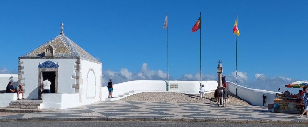 Kaplnka nad útesom v Nazaré.. s obrubou, aby sme nespadli my..