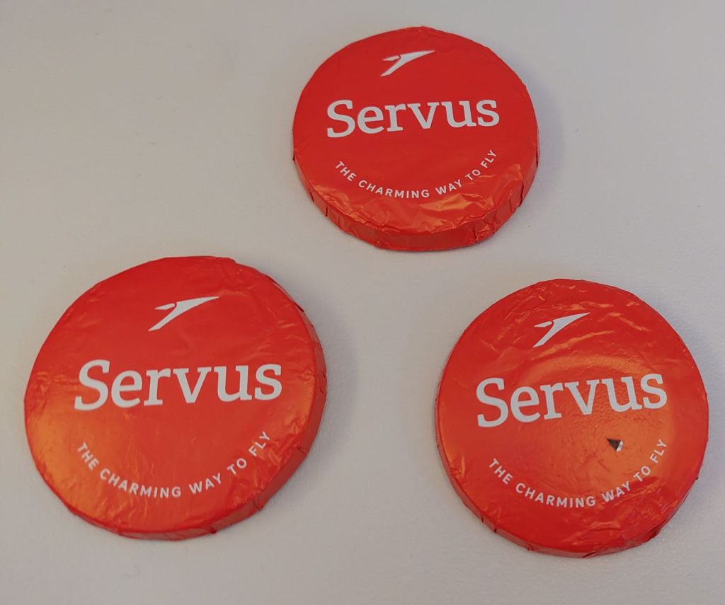 Tento let ubehol rýchlo (asi 2:20hod.), bez vzruchu, keď nepočítame skvelý servis spoločnosti Austrian, ktorý stojí za zmienku. 2dc minerálky a čokoládka s nápisom „Servus“. Ešteže dali Janke na vypýtanie dve. Pre let nám vybrali maličké lietadlo Embraer 195, ktoré obsahovalo dve sedačky po pravej a dve po ľavej strane. Takým malým lietadielkom som ešte neletel, ale tak ja som toľkým ešte neletel… navyše v rámci Európy nelietajú veľké stroje, iba malé lietadlá. A miesta na nohy tam bolo dosť. (Keď sme šli na jar Ryanair-om, tam sa mi zdalo miesta na nohy podstatne menej). A tak som si, rovnako ako bolo na miestnej čokoládke napísané, pomyslel „Servus“ a letelo sa ďalej. Let bol veľmi príjemný. Čo som aj chcel, žiadne turbulencie som nikdy nezažil a ani nemusím zažiť. Načo stres..