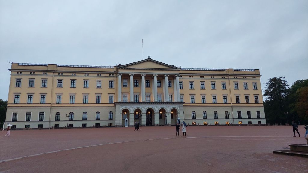 .. až sme prišli ku kráľovskému palácu. A keďže Nóri sú emancipovaní, v nórskej hradnej stráži môže byť a poctivo strážiť kráľovskú rodinu i žena. Od roku 2014 (kedy toto nariadenie schválil nórsky parlament) majú povinnú vojenskú službu aj ženy. Vraj, kvôli rovnoprávnosti.