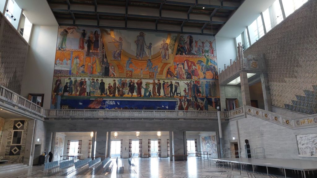 Veď načože iné sme tu? A tak včerajšia bolesť nôh musela rýchlo ustúpiť do autu. A ako sme plačlivé počasie včera zanechali, tak nás dnes privítalo. Našťastie iba krátko. Navštíviť sme však stihli radnicu, kde sa slávnostne udeľuje Nobelova cena za mier, aj keď tú ešte za dažďa…