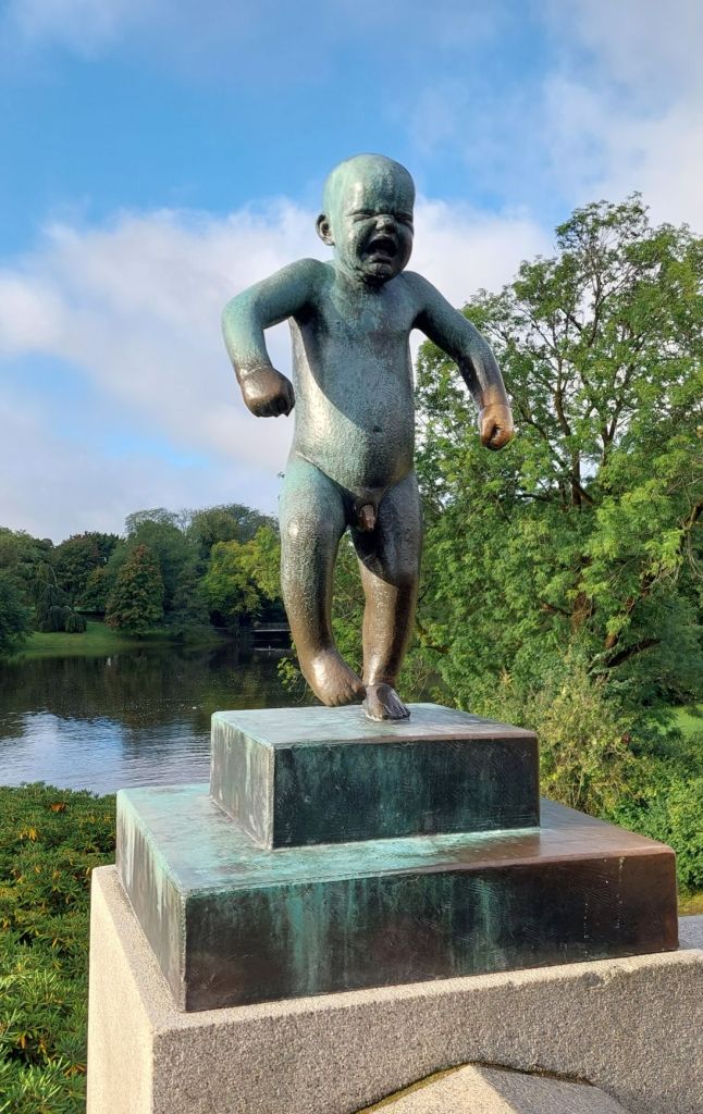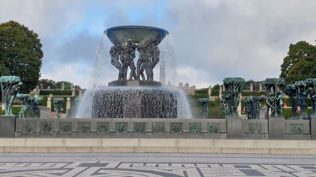 So začiatkom dňa, nás privítalo lepšie počasie, a my sme mohli pokračovať v poznávaní. Naším cieľom sa tentokrát stal Frognerov park, kde sa nachádzajú sochy slávneho nórskeho sochára Gustava Vigelanda. Je ich viac ako 200, najkrajšie a najznámejšie sú: obelisk Kolebeh života, nachádzajúci sa v strede parku, a Monolit nahnevaného chlapca. Všetky sú ale nádherné.