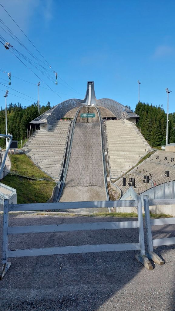 Prišli sme sa pozrieť aj na skokanský mostík a biatlonový areál v Holmenkollene, ktorý sa nachádza v Osle. Teraz už vieme, že Nasťa Kuzminová ohlásila návrat do súťažného kolotoča, avšak v tejto chvíli tu boli jej posledné preteky. My sme tiež videli pretekárov, ktorí tu trénovali na koliečkových bežkách. Z mostíka sa dalo naspäť na zem dostať, nie iba výťahom. Viacerí odvážlivci išli dole tzv. ZIP LINE. Nie však z našej skupiny. Ja by som sa bál.