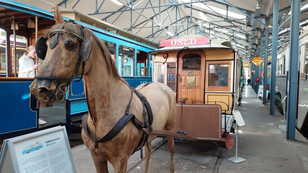 Naše ďalšie kroky smerovali do múzea dopravy. Boli tu krásne, staré súpravy, ktoré sa používali v Osle v 40.-tych, 50.-tych, 60.-tych rokoch. Niektoré ešte aj s odkladaním na lyže, či bežky, bola tu však i súprava, ktorá bola ťahaná ešte i koníkmi. To bolo radosti, pred každou súpravou, v každej sme sa chceli fotiť. Pripadali sme si troška ako malé deti. Každý ale peknú fotku chcel mať.