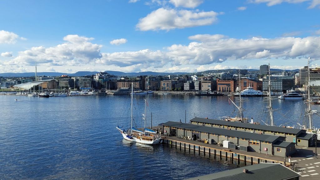 A keďže sa deň neúprosne blížil k večeru, bol čas, nastúpiť na vyhliadkovú loď po Oslofjorde. A ako vidno i z fotografie, počasie nám už naozaj prialo.