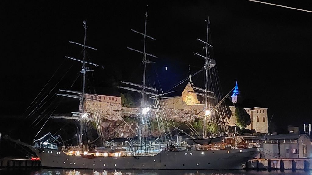 Nie, takouto nádherou sme teda nešli. Loď a prístav v Oslo.